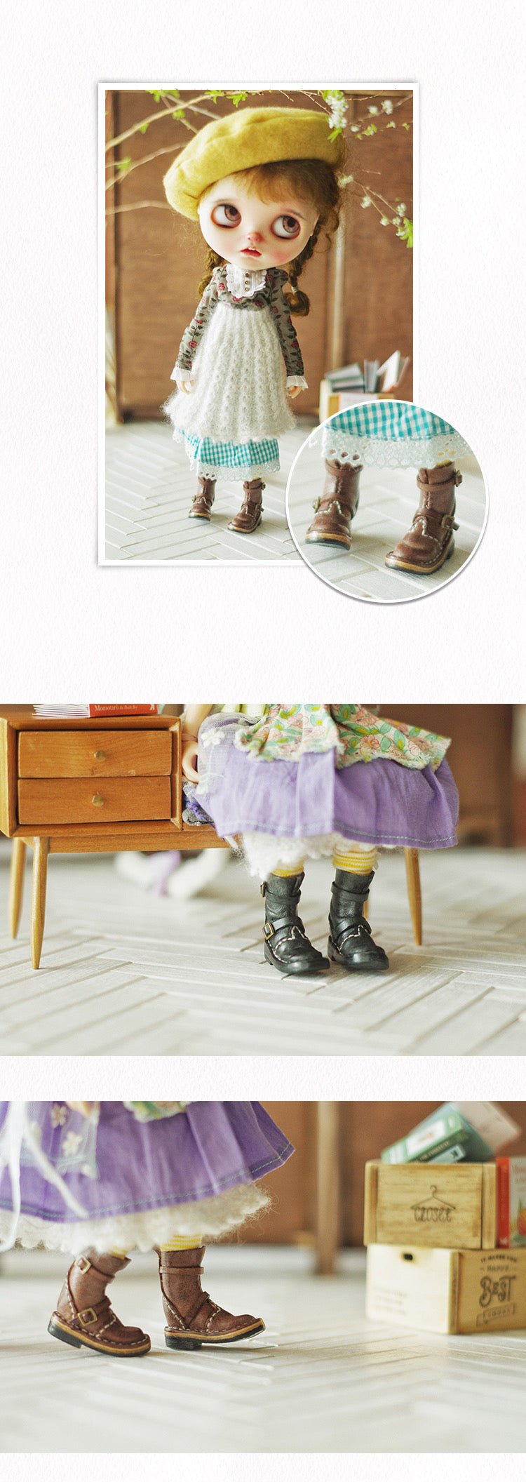 Fit for BLYTHE OB24 OB22 OZS size BJDFEET SIZE:1/3(7CM)-1/4(MDD5.5*2.5CM)-1/6(YOSD4*1.8CM)-OB24/OB22(3.5*1CM) |
